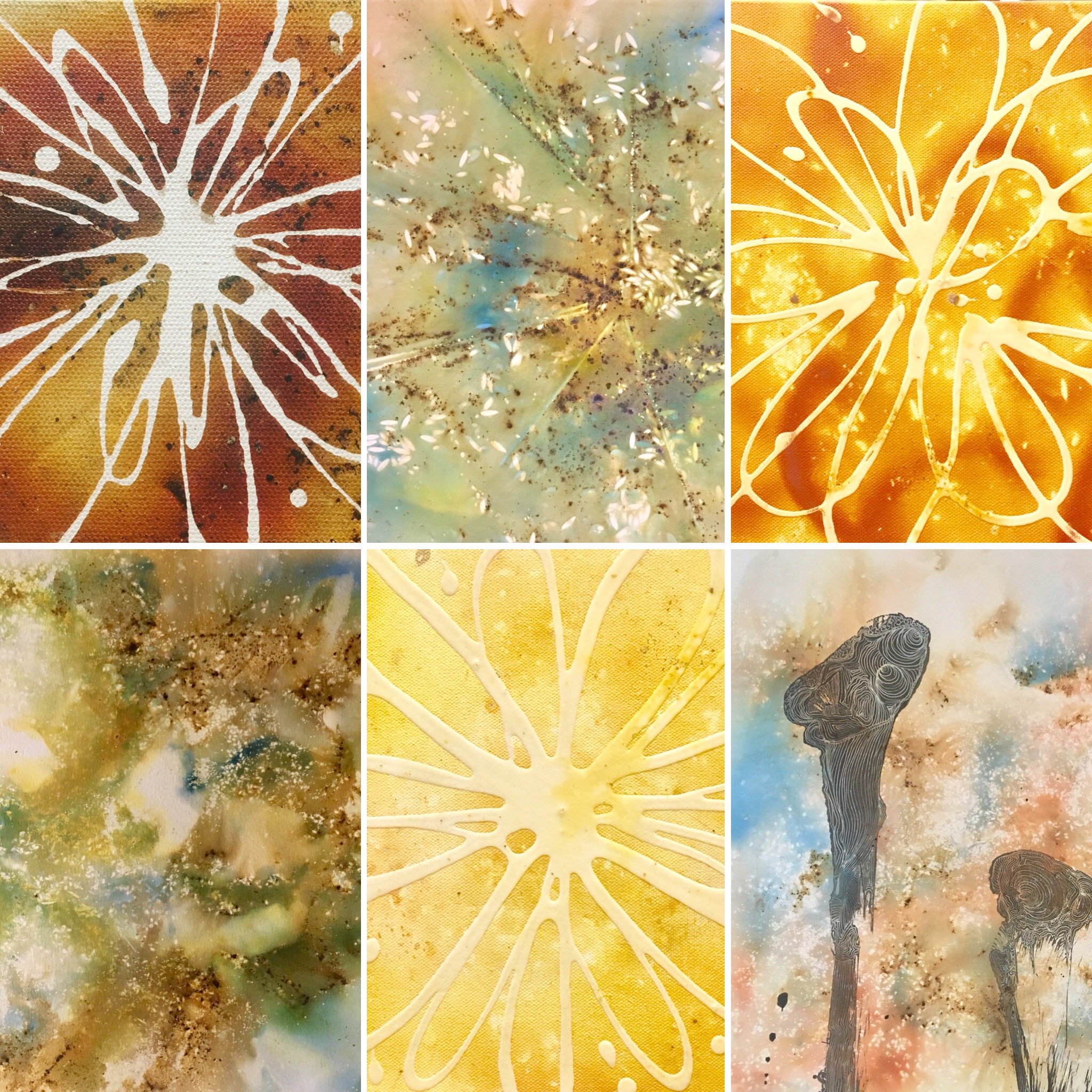 After creating my first abstract, I quickly became addicted and realized it started a frenzy. With this new process, there’s no way I can make two alike… I probably couldn’t even make them similar. I now have several other methods for abstracts, such as my Abstract Flower Series (some shown below).