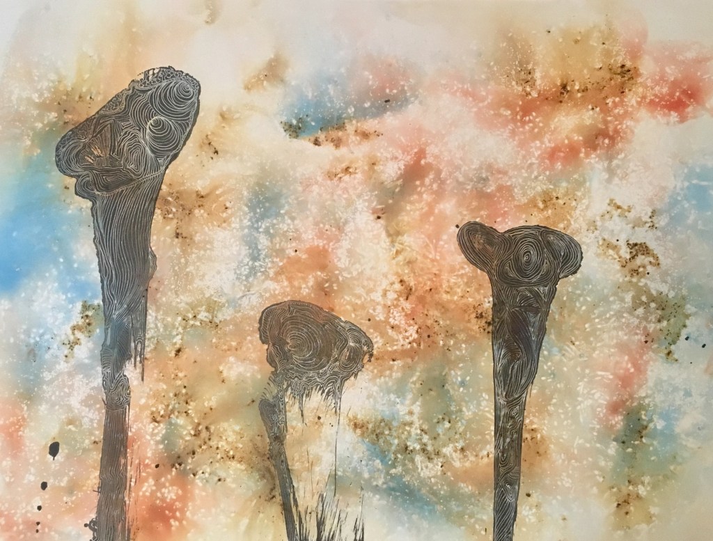 gunpowder/smoke bombs/mixed media on paper (framed)